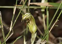 | Pterostylis ophioglossa in Columbey National Park near Dungog | |