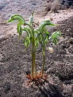 - ^ a b c Jones, David L.; Clements, Mark A. (1993). "New species of Pterostylis R.Br. (Orchidaceae) from Victoria and New South Wales". Muelleria. 8 (1): 81–82.