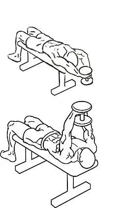 This exercise can be done using either a straight barbell, EZ barbell,[4] dumbbell[5] or cable attachment.