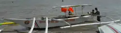 A pump boat (usually variation as pambot in local languages) is an outrigger canoe (bangka 'boat') native to Southeast Asia powered by a small gasoline or diesel engine. Smaller pump boats might be powered by the sort of small single-cylinder engine used to drive a water pump. Larger ones are often powered by recycled automobile engines.[1]