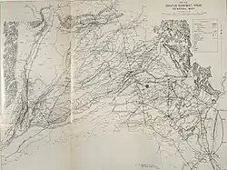 The Chenab Colony was the largest colonisation project in the Punjab, beginning in 1892. It covered the entirety of the Lyallpur district, along with parts of the Jhang, Gujranwala and Lahore districts. The area was well suited for large-scale colonisation, being a level, alluvial plain, virtually unbroken by ridges or natural drainages.[31] The area was mostly barren land, save for settlement in the riverain tracts, and the presence of semi-nomadic pastoral people known as Janglis, whose rights to graze the land had not been recognised as amounting to proprietary rights by the government.[32] These groups would however form part of an indigenous grouping, classed together with individuals from Montgomery, Jhang and Gujranwala who would be allotted 35 per cent of the total land in the new colony.