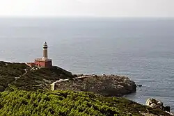 Punta Carena Lighthouse (Italian: Faro di Punta Carena) is an active lighthouse, located on the island of Capri on the head of the same name, about 3 kilometres (1.9 mi) southwest of Anacapri. The lighthouse has been active since 1867; its construction began in 1862.