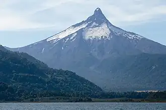 Puntiagudo-Cordón Cenizos (Spanish pronunciation: [puntjaˈɣuðo koɾˈðon seˈnisos]) is a snow-capped volcanic chain located in the Andes, in Los Lagos Region of Chile, near Volcán Osorno. It lies between Rupanco Lake and Todos los Santos Lake. "Volcán Puntiagudo" (Spanish for "Sharp-pointed volcano") is a stratovolcano with a prominent 2,493 m high sharp-pointed summit that results from glacial dissection and gets its name from this feature. According to locals, the Puntiagudo volcano lost some of its sharp point in the earthquake of 1960 (9.4–9.6 Mw). So the volcano was more pointed than it is today. Puntiagudo is also given the name Cerro Cenizas.
