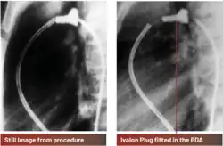 Still Image from Procedure - Non-surgical PDA ClosureIn 1990, Dr. Purshotam Lal performed India’s first non-surgical closure of a patent ductus arteriosus (PDA) using the modified porstman's technique.[42] The procedure, conducted on a 12-year-old boy from the Maldives at Apollo Hospital, Chennai, involved closing the congenital heart defect by introducing a specialized foam plug through a catheter. This minimally invasive approach provided a cost-effective alternative to surgery for PDA closure in children.[43][44]