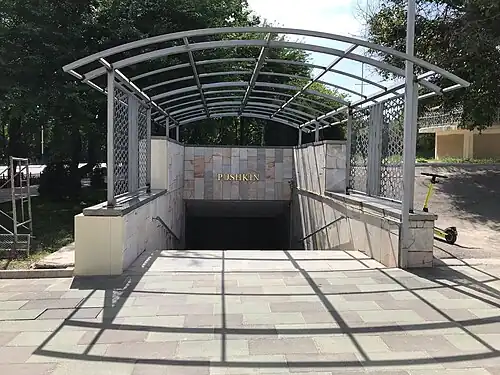 Pushkin is a station of the Tashkent Metro on Chilonzor Line. This station is named after poet Alexander Pushkin. It was opened on 18 August 1980 as part of the second section of Chilonzor Line, between October inkilobi and Maksim Gor'kiy.[1]