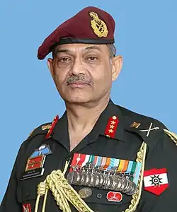The general officer was commissioned into the 4th battalion of the Parachute Regiment (Special Forces) on 19 December 1987 from the Indian Military Academy.[1] In a career spanning over 37 years, he has tenanted various Command and Staff appointments and served across various operational, field and highly active Counter Insurgency area. He participated in numerous military operations, including Operation Pawan, Operation Meghdoot, Operation Rakshak and Operation Orchid. He also served in the United Nations under UNIFIL and Sri Lanka.[7] He commanded a Special Forces Unit in the Kashmir Valley and on the Line of Control. As a brigadier, he served as the brigade commander of an Infantry Brigade and as a Major general, he has commanded a Mountain Division during 2020–2021 China–India skirmishes along. Later served as MG GS at headquarters Central Command. He has also served at the Infantry School, situated at Mhow and the Strategic Forces Command. [8]
