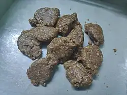 Pustakari (Nepali: पुष्टकारी pronounced [ˈpusʈʌkaɾi] ⓘ) is a Nepali candy,[1] made from molasses, cooked with ghee and milk, and topped with coconut, dates or nuts. In the Kathmandu Valley, where the Newar confectioners have refined the art of preparing it, it is known in Nepal Bhasa as 'postikan'.