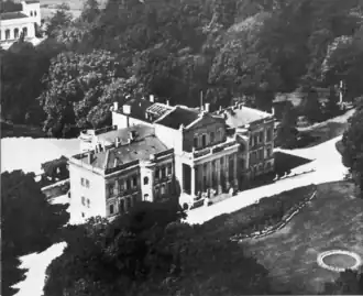 The park was also transformed into an English landscape garden.[1] English landscape gardens, as a conscious contrast to the previously dominant French-style baroque gardens, were very popular in Germany towards the end of the 18th and throughout the 19th century. The orchestrated park landscape of trees, bushes, flowers, meadows, water surfaces, paths, and squares was intended to represent an alternative world to the usual harsh reality. The prince resided in Berlin during the winter from 1816 onwards and was also inspired by the ideas of Prussian parks. In 1823, he became a member of the Association for the Promotion of Horticulture in the Royal Prussian States of Prussia (short: Berlin Horticultural Association).