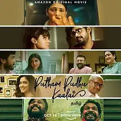 Putham Pudhu Kaalai (transl. A brand new dawn) is a 2020 Indian Tamil-language anthology film, consisting of five short film segments, directed by Sudha Kongara, Gautham Vasudev Menon, Suhasini Maniratnam, Rajiv Menon, and Karthik Subbaraj. The film features an ensemble cast of Jayaram, Kalidas Jayaram, Shruti Haasan, Kalyani Priyadarshan, Andrea Jeremiah, Bobby Simha, M. S. Bhaskar, Ritu Varma, Urvashi, Suhasini Maniratnam, Anu Haasan, Kathadi Ramamurthy, Komalam Charuhasan, Gurucharan C, Leela Samson, Sharath Ravi and Vettai Muthukumar among others.[1] The film was entirely shot during the COVID-19 pandemic in India and was set against the backdrop of the country's 21-day lockdown in March 2020. The film was released on Amazon Prime Video on 16 October 2020.[2] A sequel titled Putham Pudhu Kaalai Vidiyaadhaa was released in 2022.[3]