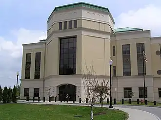 After the New York state legislature divided Putnam County from Dutchess to its north in 1812, it required the creation of two courts. Trials were held in Carmel's Baptist meeting house until a courthouse could be built. After three months, one state legislator who had voted for Putnam County's creation, Robert Weeks, sold it a one-half acre (2,000 m²) lot in the middle of Carmel.[1]