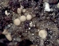 The paraphyses, or sterile filaments interspersed among the asci, are colourless (hyaline), cylindrical, branched, and interconnected (anastomosing). They are of even length with the asci. The ascospores are also hyaline, thin-walled, smooth, ellipsoid to somewhat spindle-shaped (subfusoid), and lack internal divisions (aseptate). They contain prominent vacuolar remains that are visible in most reagents.[8]