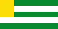 The flag of the Department of Putumayo is a rectangle with horizontal tricolored stripes. The green stripe symbolizes the jungles that almost entirely cover the Department. The white stripe symbolizes the peaceful character of the people of Putumayo. The black stripe symbolizes oil, the Department's main economic resource.[7]