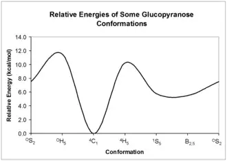 - ^ Biarns, X.; Ardvol, A.; Planas, A.; Rovira, C.; Laio, A.; Parrinello, M. (2007). "The Conformational Free Energy Landscape of β-D-Glucopyranose. Implications for Substrate Preactivation in β-Glucoside Hydrolases". Journal of the American Chemical Society. 129 (35): 10686–10693. doi:10.1021/ja068411o. PMID 17696342.