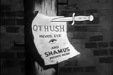 Q.T. Hush is a 1960–61 American animated cartoon released in syndication, beginning on September 24, 1960. The show's 100 three-and-a-half-minute episodes, all in color, were directed by veteran animator Rudy Cataldi, and produced by Animation Associates. The series was designed to air either as a daily five-minute cliffhanger in a locally-produced children's show, or packaged as a half-hour program.[1] Each story was ten parts; in the daily version, the story would last for two weeks.[2]
