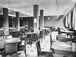After the war, the hotel was renovated, including all-new interior and furniture for the restaurant and saloons.[7] Plans for a ski lift were launched by hotel manager Ruth Juul in 1936. Instead, the hotel started with slalom instruction. In 1947, the tourist committee started working on the plans, which resulted in Norsk Spisevognselskap being a major owner of the lift which opened at Hovden in 1952. This also gave a large increase in demand.[8] In 1957, Architect Hugi Kohmann presented a model for three additions, two large two-story buildings and one eight-story. Although supported by the hotel management, the board of Spisevognselskapet were split, and in the end only one of the two-story extensions were built and completed in 1962.[2]