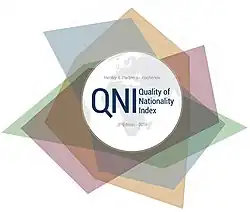 The Quality of Nationality Index (QNI) ranks the quality of nationalities based on internal and external factors.[1] Each nationality receives an aggregated score based on economic strength, human development, ease of travel, political stability and overseas employment opportunities for their citizens.[2] The QNI was created by Dimitry Kochenov and Christian Kälin, chairman of Henley & Partners.