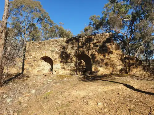 The Hill End Quartz Roasting Pits Complex was established by the Colonial Gold Mining Company in 1855, on the traditional land of the Wiradjuri people, to provide gold extraction facilities for those working claims on the Tambaroora and Hill End goldfields. Although at this time alluvial mining was the primary method of gold recovery, the Tambaroora fields also supported the earliest attempts at reef mining in Australia, over fifteen years before the reef mining boom of the 1870s. The Quartz Roasting Pits Complex is one of the oldest goldrush sites in Australia and represents one of the first attempts to process gold bearing ore. It also represents an unusual technological solution to the problems initially experienced in extracting payable gold from the quartz reefs, in its development of the earliest form of quartz firing technology in Australia. With kilns for roasting gold bearing quartz, a sophisticated battery and dam system for crushing and washing the ore and houses for workers, the Complex provides tangible evidence of technological, social and domestic relationships during this very early stage of Australia's goldmining history. Gold bearing quartz was brought to the Complex from surrounding mines and roasted to make it easier to crush (a relatively unusual process) and then crushed in a steam powered battery. Gold was then extracted from the powdered ore through a process of sieving and washing.[1]