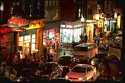 South Street's commercial revival began in the 1970's with a few anchor businesses like Eye's Gallery, JC Dobbs, and The Theater of the Living Arts,[18] ramping up through a gritty punk phase into the restaurant/club/retail pastiche that exists today and extends fingers into Head House Square and 4th Street.