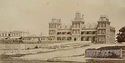 The opening of a railway line to Geelong in 1879[7] brought more tourists to the area, and numerous luxury hotels (or coffee palaces) were built to accommodate them. The Palace Hotel (later renamed Esplanade Hotel, now known as the Queenscliff Brewhouse) was built in 1879, the Baillieu Hotel was built in 1881 (and later renamed Ozone Hotel),[8] the Vue Grande Hotel in 1883, and the Queenscliff Hotel in 1887.