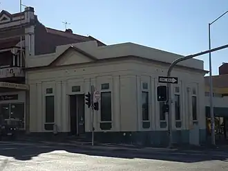 The first building on the site was George Thorn's Queen's Arms Hotel, built in 1843. This was demolished probably c. 1875 and the land sold as separate allotments. The corner site was bought by surveyor and real estate agent Enoch Bostock who constructed an office which opened for business on 1 January 1878. A three-stall stables was built behind the office and blacksmith William Hayne operated from there, using an entry in East Street.[1]