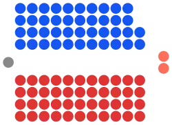 On election night, the outcome of the election was inconclusive, though most political analysts projected that the LNP had lost its majority after suffering what ended up being a record 14-point two-party swing.[1] Newman was defeated in his seat of Ashgrove to his predecessor, Kate Jones—only the second time since Federation that a sitting Queensland premier has lost their own seat. With the outcome in his own seat beyond doubt, Newman announced his retirement from politics, though remained as caretaker premier pending the final results. According to projections from both ABC News and Brisbane's The Courier-Mail, Labor had taken at least 30 seats from the LNP, and was very close to picking up the 36-seat swing it needed to form government in its own right—a feat initially thought impossible when the writs were issued. On the day after the election, both outlets had Labor either two or three seats short of a majority.[2][3] Political analysts opined that the balance of power was likely to rest with Katter's Australian Party and independent Wellington.