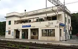 Quercianella–Sonnino railway station, on the Pisa–Livorno–Rome railway line, serves Quercianella, a small village on the Etruscan coast between Antignano and Castiglioncello few kilometers south of Livorno.[1] The trip from Pisa can take as little as half an hour and one hour and a half from Florence. The easy access has made Quercianella a favourite location for summer vacations.