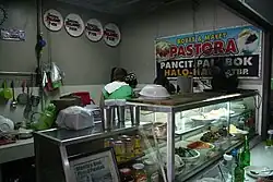 As a commercial hub, Quinta Market is strongly connected with Filipino cuisine and the Manila food culture. In its heyday, the market was seen as a pleasant place to dine at,[51] and shoppers would patronize the many carinderias (food stalls) inside, known for their pancit, menudo, puto and dinuguan.[52] The market is also known for its halo-halo,[51] and it is believed that the dessert was invented here as an innovation on the Japanese mitsumame in the 1920s or 1930s.[53] Some of the carinderias have become notable in their own right: in 2014, the Manila Bulletin identified Pastora Special Palabok as having the best pancit palabok in Manila,[54] while Edna's Eatery, known for its nilagang baka, was featured on the GMA Network morning show Unang Hirit.[55]