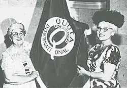 Quota International, Inc. is an international service organization that, provides basic needs to women, children, the deaf, and hard of hearing in communities around the world.[1] Quota International's world service projects were aligned with the United Nations' Millennium Development Goals. Specifically, Quota clubs worked towards UN MDG Goals 1 and 3: to eradicate extreme poverty and hunger, and to promote gender equality and empower women, respectively.[2] The organization was founded in Buffalo, New York, in 1919 by Wanda Frey Joiner, as a service club for women similar to that of popular all-male clubs.