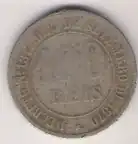 Between 1833 and 1835, the coinage was reformed. The copper coinage was standardized across the country, with the introduction of countermarked coins for 10, 20 and 40 réis. Silver coins were introduced in denominations of 100, 200, 400, 800 and 1,200 réis, along with gold 10,000 réis.