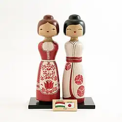 Kokeshi dolls made for the 150th anniversary of Japanese-Hungarian diplomatic relations