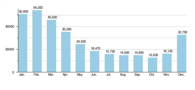 Monthly combined discharge of Sacramento River at Freeport and Yolo Bypass near Woodland (cfs)[22][23]