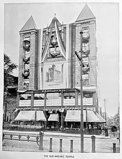 The Boston Masonic Temple, built in 1830 on the site of the Washington Gardens at the corner of Tremont Street and Turnagain Alley (which became Temple Place), was sold to the United States government in 1858 for use as a federal courthouse. The building was sold at auction in 1885 to the estate of William Fletcher Weld, which immediately leased it to R. H. Stearns and Co.[2]