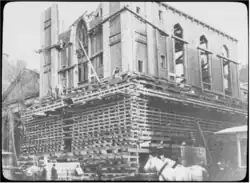 Stearns embarked on an ambitious remodeling project that involved raising the temple walls and inserting two stories of iron and glass underneath.[3]