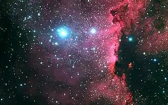 RCW 108, also called the Rim Nebula,[1] is a large star formation in the Milky Way, about 4,000 light years from Earth. RCW 108 is part of the Constellation Ara.[2] is in the process of being destroyed by intense light which radiates from a star inside of NGC 6193. NGC 6188 has an angular extent of 20.0' × 12.0', and has been heavily documented by multiple telescopes, including Chandra and Spitzer.[3]