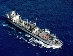 On 28 June 2001 she deployed to relieve sister Leaf-class support tanker Orangeleaf and was then permanently based in the Gulf. During June and August she performed replenishment at sea (RAS) with various RN, HMCS, USN and other Allied ships, returning to either anchor off Dubai or berthing at Port Rashid.[2] In September she took part in Exercise Argonaut 2001, which included Exercise Saif Sareea, together with the Invincible-class aircraft carrier Illustrious, fourteen other Royal Navy warships and the RFA's replenishment ships Fort Victoria, Fort Rosalie and Fort Austin, the Round Table class landing ship logistics Sir Tristram, Sir Bedivere, Sir Percivale and Sir Galahad (II), sister Leaf class Oakleaf and the forward repair ship Diligence.[3]