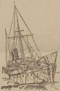 A sketch depicting the wreck of the RIMS Warren Hastings, published by the Dundee Courier on 24 March 1897.[1]