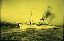RMS Empress of China was an ocean liner built in 1890-1891 by Naval Construction & Armament Co., Barrow, England for Canadian Pacific Steamships (CP).[1] This ship—the first of three CP vessels to be named Empress of China[2]—regularly traversed the trans-Pacific route between the west coast of Canada and the Far East until she struck an underwater reef and sank in Tokyo harbour in 1911.[3]