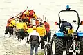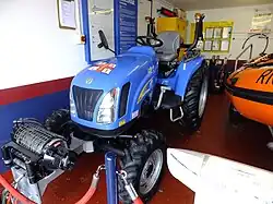 The RNLI engineering department in Poole worked with the tractor company New Holland to design a small launch tractor for stations which operate D-class inflatable lifeboats. The powerful small diesel engine gives out 45 hp (34 kW).[1] The tractor is undersealed to resist a saline environment. The tractor is fitted with turf tyres, which function better on sand, as well as wooden and concrete slipways. The specification complies with DVLA legislation, allowing the tractor to be used on public highways.