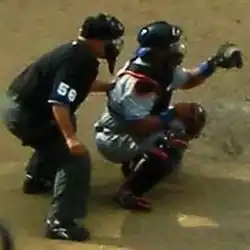 ![]() Cassanova (right) catching for the New York Mets in 2008 | |
