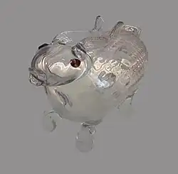 Since early 2000, Ottmar Hörl has created several works based on Dürer's Hare, including a giant pink version.[13] Sigmar Polke has also engaged with the hare on paper or textiles, or as part of his installations,[14] and even in rubber band form.[15] Dieter Roth's Köttelkarnikel ("Turd Bunny") is a copy of Dürer's Hare made from rabbit droppings,[16] and Klaus Staeck enclosed one in a little wooden box, with a cutout hole, so that it could look out and breathe. Dürer's Hare has even inspired a depiction of the mythological Wolpertinger.