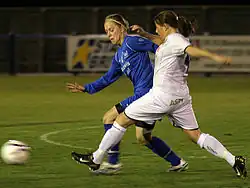 Stowell (right) tackles Heather Scheuber of Birmingham City