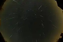 The radiant or apparent radiant of a meteor shower is the celestial point in the sky from which (from the point of view of a terrestrial observer) the paths of meteors appear to originate.[1] The Perseids, for example, are meteors which appear to come from a point within the constellation of Perseus.