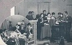 Although it never became a medium devoted to entertainment as in the United States,[18] radio nevertheless played a major role in boosting the morale of the Japanese people during the difficult post-war transition period.[19] Indeed, the Allied reform of the broadcasting system favoured the emergence of a new genre of programmes designed specifically for the public. The best known of these, Gaitō rokuon, represented an entirely new concept for Japanese radio listeners, offering interviews and exchanges of opinions recorded directly in the street among the people.[20] There were also the first prize games (such as Kimi no na wa, Watashi wa dare deshō and Tonchi kyōshitsu) and radio dramas (including Mukō sangen ryōdanari and Kane no naru oka), the concept of which was imported from America;[19] singing contests for amateurs such as Nodo jiman shirōto ongakukai contributed to the popularisation of singing as a new form of entertainment.[21] With the end of the occupation period, international broadcasting on Radio Japan also resumed after six years of enforced silence.[22]