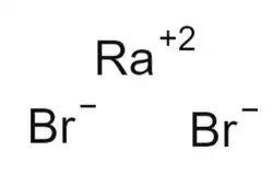 Radium bromide is the bromide salt of radium, with the formula RaBr2. It is produced during the process of separating radium from uranium ore. This inorganic compound was discovered by Pierre and Marie Curie in 1898, and the discovery sparked a huge interest in radiochemistry and radiotherapy. Since elemental radium oxidizes readily in air and water, radium salts are the preferred chemical form of radium to work with.[3] Even though it is more stable than elemental radium, radium bromide is still extremely toxic, and can explode under certain conditions.[4]