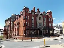 The county council generally held its meetings at the Pump House Hotel on Spa Road East in Llandrindod Wells.[22] In 1909 the county council built itself offices at the "County Buildings" in the High Street at Llandrindod Wells.[23]