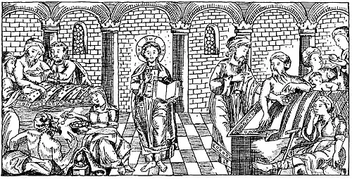 Iordache also participated in the national government, as both Stolnic and caretaker of the schools, emerging as a protector of Gheorghe Lazăr, the progressive educationist.[65] In early 1813, Caradja left an official document praising Iordache for his dedication and faith.[66] As noted by literary historian Mircea Iorgulescu, Dinicu and Iordache were in fact part of the opposition, a "Golescu party" whereby "the Wallachian boyars, having been turned from soldiers into courtiers," used their influence to undermine Caradja.[67] In July 1813,[68] Radu Golescu was assigned to a boyars' team which tried to contain "Caragea's plague"; according to Iorgulescu, this was Caradja's attempt at "buying off" the Golescus.[67] Specifically, he and Postelnic Constantin Suțu reviewed reports of any local outbreaks, also conceiving of a project (never undertaken) to sanitize the Dâmbovița River on its lower course.[69] In 1815, this experience allowed him to contribute directly towards funding Filantropia Hospital, alongside Constantin Caracaș and Grigore Brâncoveanu.[44] In June 1813, he endorsed a six-year monopoly for the pharmacist Lorenz Dampner, who had opened up shop on Podul Mogoșoaiei.[70] In August, he and his colleagues ordered a metochion-and-inn on that same street to be used as a provisional hospital.[71] The plague continued to kill Wallachians, including, in September 1813, members of the Great Ban's own household.[72]