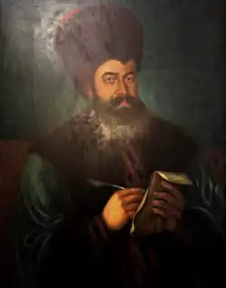 Radu Golescu-Știrbei, historically known as Radul or Răducanul Golescul (Cyrillic: Радꙋ̆л[1] or Ръдуканꙋ̆л Голєскꙋ̆л;[2] 3 May 1746 – 8 October 1818), was a Wallachian statesman, entrepreneur and philanthropist; he was the maternal grandson of Spatharios Radu Leurdeanu Golescu, as well as the father of the writers Iordache and Dinicu Golescu. His life, as well as his participation in government, coincided with the Phanariote reigns, by Greek or Hellenized Princes acting under Ottoman suzerainty. Himself educated in Greek, Golescu was a native boyar, and, like his sons, tended to side with the early manifestations of Romanian nationalism; he was especially prone to economic nationalism—though he alternated this commitment with episodes of participation in Phanariote spoliation, and was vilified as such by Wallachia's taxpayers. Before his political ascent, he established reputation as a businessman and early capitalist, investing in lucrative exports and helping to expand his family manor in Golești. Especially in his final decade, Golescu reinvested much of his wealth into the social uplift of peasant communities, building several rural schools and sponsoring the printing of books.