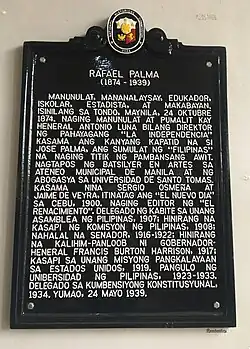 - ^ a b "About Rafael Palma". The Philippine Diary Project. Retrieved October 20, 2019.
