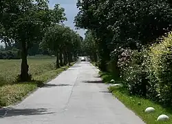The hall is east of the Six Hills junction of the A46 dual carriageway (Fosse Way) with the B676 in the parish of Hoby with Rotherby. It is east of the Charnwood borough boundary.