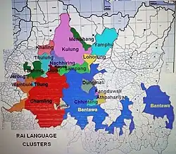 Rai Languages Clusters distribution in Eastern Nepal Province No. 1 : Include: Bantawa, Chamling, Kulung, Thulung, Athpahariya, Dungmali, Lohorung, Yamphu, Mewahang, Sampang, Jerung, Bahing, Tilung, Wambule, Dumi, Puma, Chhiling Phangduwali, Chhintang, Nachhiring and Koiyu. - Bantawa language, a Kiranti language spoken in Nepal, Darjeeling, Sikkim, Kalimpong and Bhutan